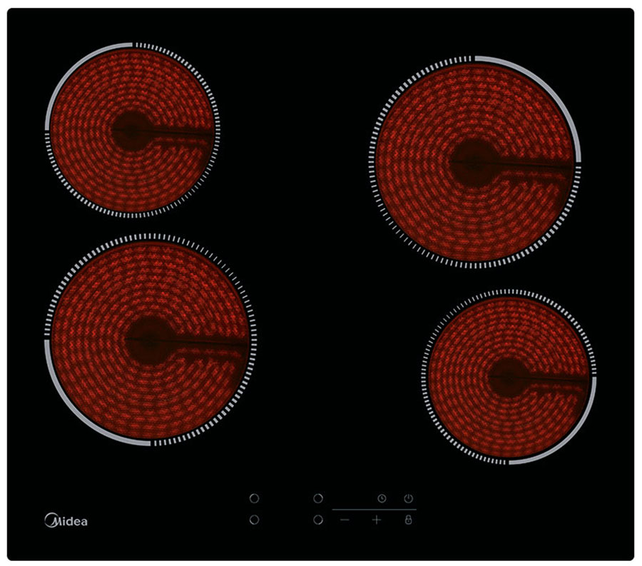 Устройство Midea MCH64140 дополнено индикацией остаточного тепла, которая не позволит случайно обжечься о горячую поверхность. Оборудование дополнено функцией таймера и системой блокировки плиты для защиты от детей. При размерах 59x52 см габариты встраивания составляют 56x49x5.1 см.