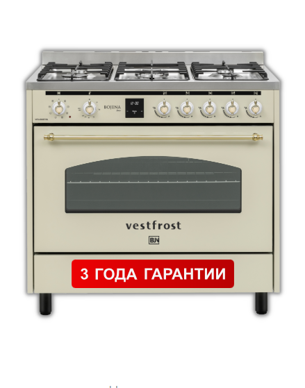 Комбинированные плиты Vestfrost Bojena c газовой варочной поверхностью и электрическим духовым шкафом - это премиальное и отлично оснащённое решение для Вашей кухни. С плитами Vestfrost Bojena лекго почувствовать себя шеф-поваром не покидая собственной кухни. 5 конфорок, отличная эргономика, электронный таймер и многофункциональная духовка позволят приготовить блюда любой сложности.