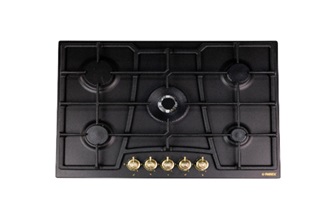 Тип варочной панели-газовая, Поверхность варочной панели-эмаль, Мощность конфорок кВт, -2,9/1/2/2/3,8 Конфорка WOK SABAF(Италия), кВт - 3,8 Электроподжиг- да, Газ-контроль- нет, Чугунные решетки- да, Ручки метталические-поворотные Rustic цвета Old Gold, Размеры ( Ш/В/Г) см, - 75/8,9/52