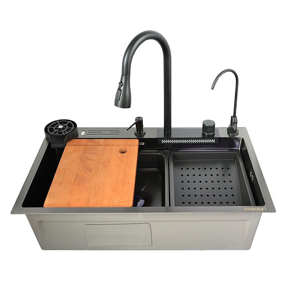 фото Мойка кухонная многофункциональная Dikalan KN754508 нерж.сталь SUS-304 черный 75*46*22см (комплект)