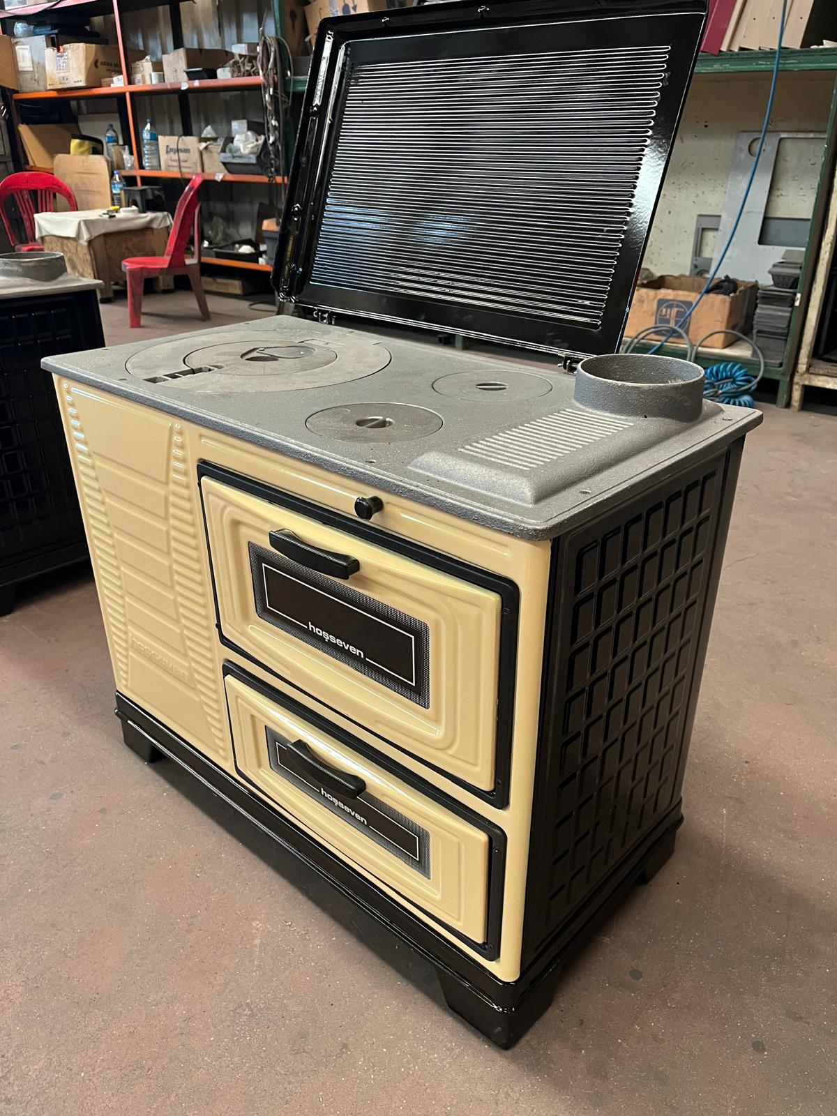 Неоспоримым преимуществом этой модели является наличие духовки. Отопительная способность печи – 50-70 кв. м. площади для отопления небольшого дома, коттеджа или дачи – это правильный выбор. Термостойкая эмаль. (Hosseven) – действительно очень хорошая и надежная печь, создающая уют Вашего дома печь отопительно-варочная с духовым шкафом, с системой«турбо» кожух – стальной эмалированный. корпус – чугун. топливная камера – шамот. размеры: ширина – 910 мм, глубина – 490 мм, высота – 685 мм вес - 75 кг мощность – 7 квт дымоход - ф 120 мм. выход – через верхнюю панель. топливо – дрова, уголь, торф