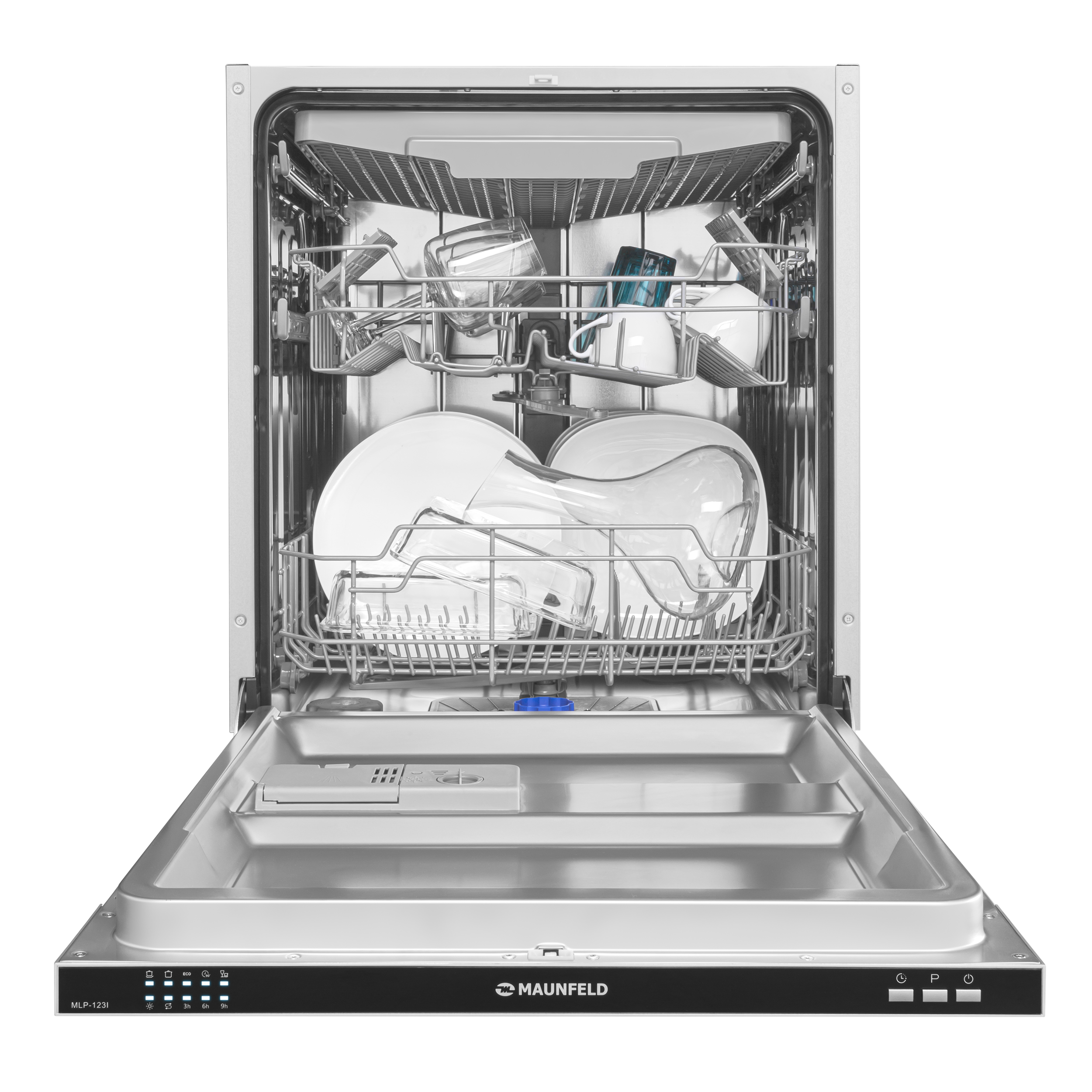 Индикаторы позволяют контролировать наличие соли и ополаскивателя. Звуковой сигнал оповещает о завершении работы. Предусмотрена надежная защита от протечек.