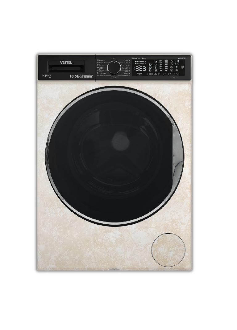 VESTEL Bojena WMS 10120 T2T4 Премиум! бежевый мрамор,10.5кг,1200об,черный люк(ультра-большой(33-51)),Touchb панель (расширенная), инверторная, стиральная машина с паром